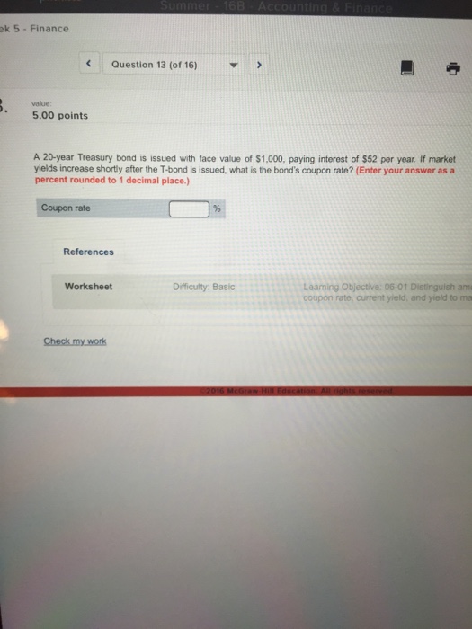 Coupon rate treasury bond. United States Rates & Bonds - Bloomberg Find information on government bonds yields, muni bonds and interest rates in the USA. ... Treasury Yields. Name Coupon Price Yield 1 Month 1 Year Time (EDT) GB3:GOV . 3 Month . Coupon Rate of a Bond (Formula, Definition) | Calculate ... The coupon rate of a bond can be calculated by dividing the sum of the annual coupon payments by the par value of the bond and multiplied by 100%. Therefore, the rate of a bond can also be seen as the amount of interest paid per year as a percentage of the face value or par value of the bond. Mathematically, it is represented as, US Treasury Bonds - Fidelity The coupon rate is fixed at the time of issuance and is paid every six months. Other Treasury securities, such as Treasury bills (which have maturities of one year or less) or zero-coupon bonds, do not pay a regular coupon. Instead, they are sold at a discount to their face (or par) value; investors receive the full face value at maturity. Individual - TIPS: Rates & Terms - TreasuryDirect TIPS are issued in terms of 5, 10, and 30 years, and are offered in multiples of $100. The price and interest rate of a TIPS are determined at auction. The price may be greater than, less than, or equal to the TIPS' par amount. (See rates in recent auctions .) The price of a fixed rate security depends on its yield to maturity and the interest ...